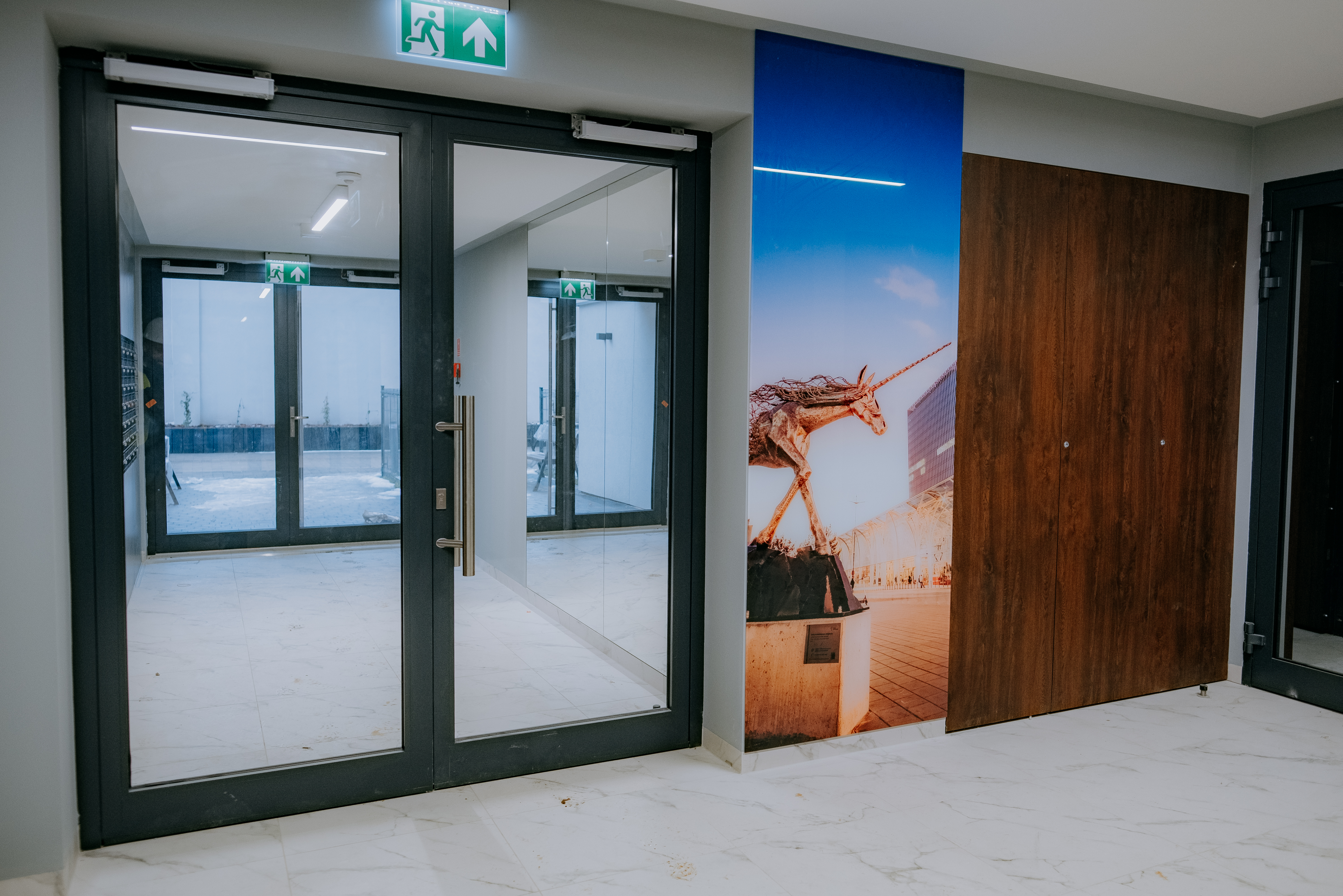 Наче того було замало, що частина квартир у Diasferze має вікна з видом на парк, ми подбали й про те, щоб з нашої інвестиції можна було побачити щось справді унікальне. Стіну навпроти Diasfery ми прикрасили яскравим авторським муралом, створеним художниками Maciejem Polakiem і Martynem Gillem під егідою лодзької Фундації Urban Forms.