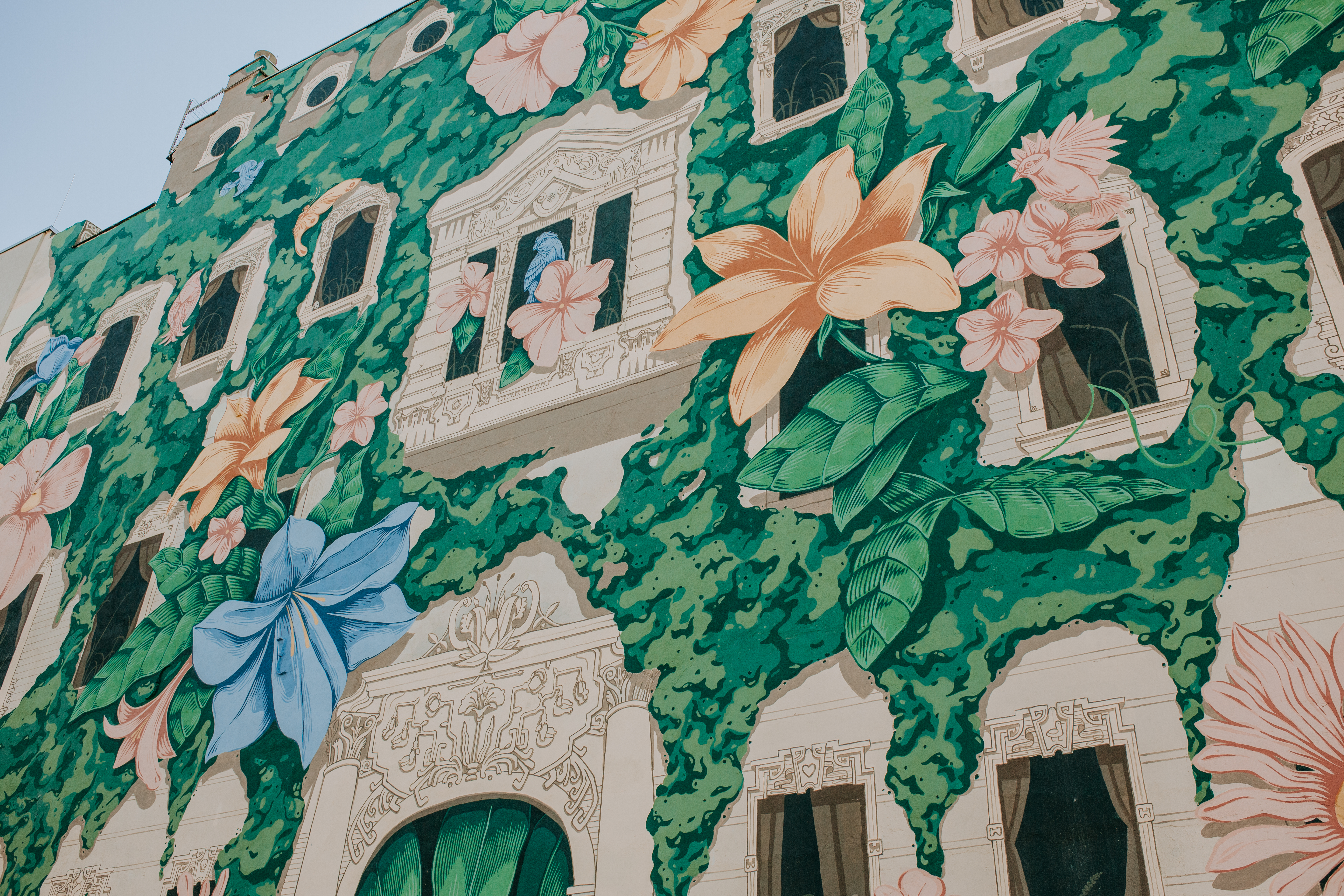 Zdjęcie autorskiego muralu w pobliżu inwestycji deweloperskiej Diasfera Łódzka